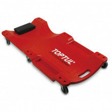 При наличии мягких подушек они шьются из материалов, стойких к бензину и маслу, поскольку автослесарь постоянно имеет дело с этими жидкостями, и их впитывание может привести к пожару. Колеса рассчитаны на движение по всем направлениям: это удобно для ремонта под днищем.