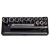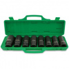 Набор ударных головок для гайковерта может состоять из трех и более предметов. Обычно это число достигает 27-ми. Чем больше размерный диапазон, тем он более практичным и универсальным является кейс с насадками. Большая комплектация — это хороший вариант для решения многих задач.