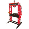 - Пресс напольный — более мощный станок с гидроприводом, который оснащается ручным, ножным или электрогидравлическим насосом. Он может быть оснащен манометром для контроля давления и рабочим столом, регулируемым по высоте. С помощью гидропривода станок создает усилие от 20 до 50 тонн. Его часто устанавливают на СТО для обработки крупных деталей легковых автомобилей, грузового транспорта и сельскохозяйственной техники.